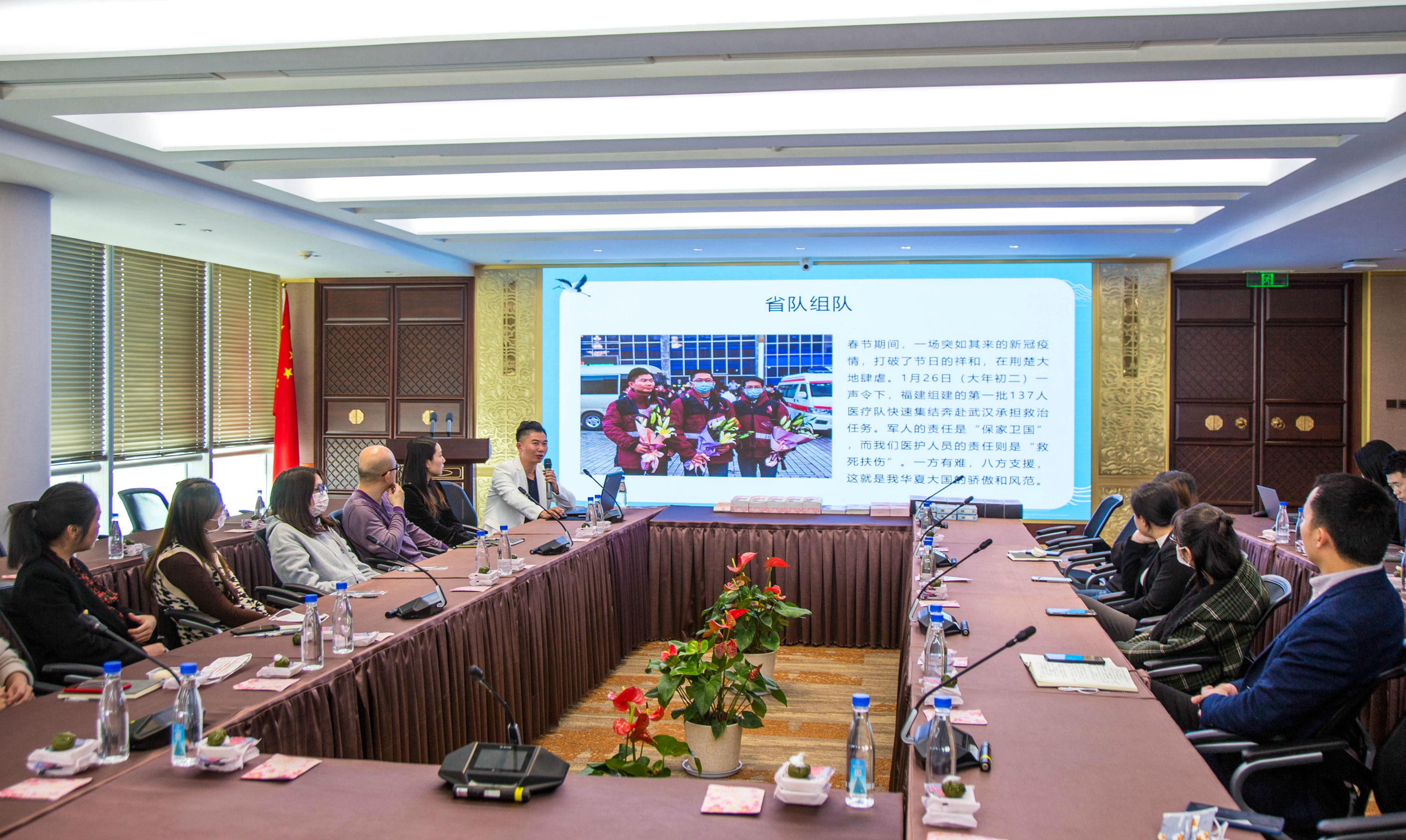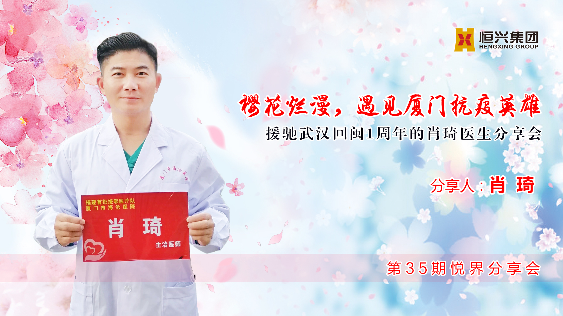 昨日(3月24日)下午,恒興集團(tuán)舉辦第35期悅界分享會(huì),主題為“櫻花爛漫,遇見(jiàn)廈門(mén)抗疫英雄——援馳武漢回閩1周年的肖琦醫(yī)生分享會(huì)”。當(dāng)天下午,肖琦準(zhǔn)時(shí)現(xiàn)身恒興集團(tuán),員工在42樓前臺(tái)送上代表陽(yáng)光幸福的花束。稍事休息,肖琦便開(kāi)啟了他的抗疫經(jīng)歷分享。