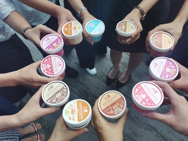 接著,伴隨著熟悉的生日歌旋律,“祝你生日快樂(lè)……”,壽星們面對(duì)燭光搖曳的蛋糕,共同許下生日愿望。雅雯代表壽星分切芒果千層蛋糕,大家舉起冰淇淋“干杯”擺造型,享用著甜美的蛋糕,每人還獲得一個(gè)生日禮物——小按摩器。