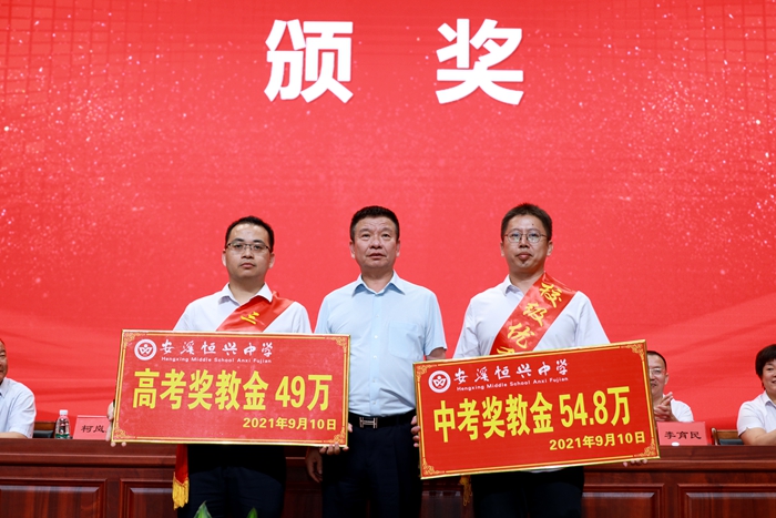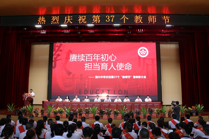 當(dāng)天下午3點(diǎn),恒興中學(xué)鐵錚大禮堂座無(wú)虛席,伴隨著莊嚴(yán)的國(guó)歌聲,慶祝教師節(jié)暨表彰大會(huì)拉開(kāi)序幕。大會(huì)表彰了2020-2021學(xué)年度“三十佳教師”、“優(yōu)秀教師”、“優(yōu)秀班主任”、“優(yōu)秀員工”、“優(yōu)秀共產(chǎn)黨員”,校董會(huì)頒發(fā)了中高考獎(jiǎng)教金。