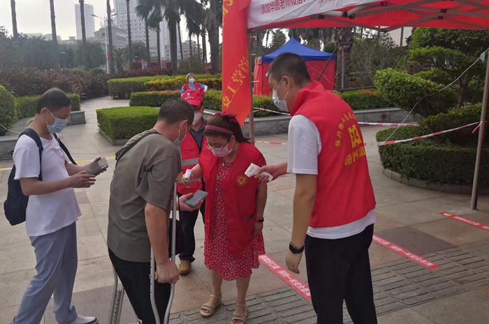 疫情當(dāng)前,真的很希望自己能做點(diǎn)什么,正好看到集團(tuán)招募志愿者,就參加了。我做志愿者的那天是9月15日下午,在那做核酸引導(dǎo)員,那會(huì)兒因?yàn)橄铝艘粓?chǎng)雨,已經(jīng)算很涼快。我自己去海濱公園點(diǎn)進(jìn)行采樣時(shí),看到很多醫(yī)護(hù)人員特別辛苦,天氣熱太陽(yáng)曬,他們都是汗流浹背的,很心疼。所以我知道那些工作人員比我支援的幾個(gè)小時(shí)辛苦多了。