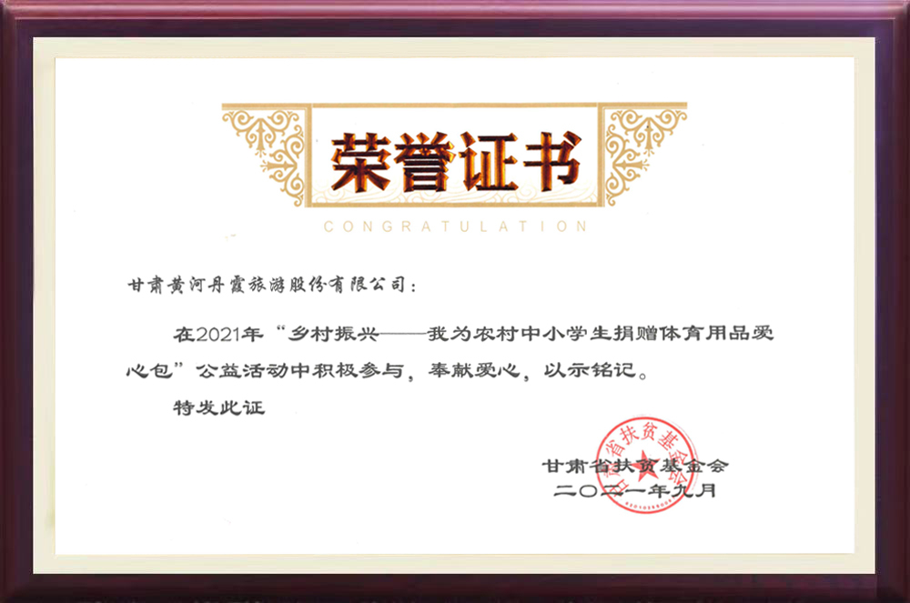 近日,甘肅省扶貧基金會(huì)發(fā)布2021年“鄉(xiāng)村振興——我為農(nóng)村中小學(xué)生捐贈(zèng)體育用品包”公益活動(dòng)表彰企業(yè)名單,廈門恒興集團(tuán)旗下甘肅黃河丹霞旅游股份有限公司獲得表彰。