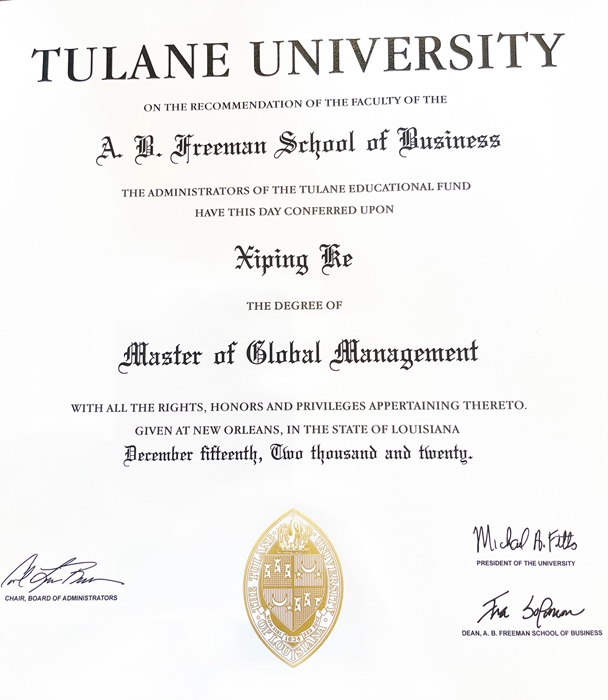 近日,廈門恒興集團董事長柯希平先生從廈門大學(xué)-杜蘭大學(xué)GEMBA第四屆順利畢業(yè),獲杜蘭大學(xué)授予全球管理碩士學(xué)位。因疫情原因,畢業(yè)典禮由杜蘭大學(xué)委托廈門大學(xué)舉辦,廈門大學(xué)常務(wù)副書記李建發(fā)出席畢業(yè)典禮,并親自頒發(fā)學(xué)位證書。