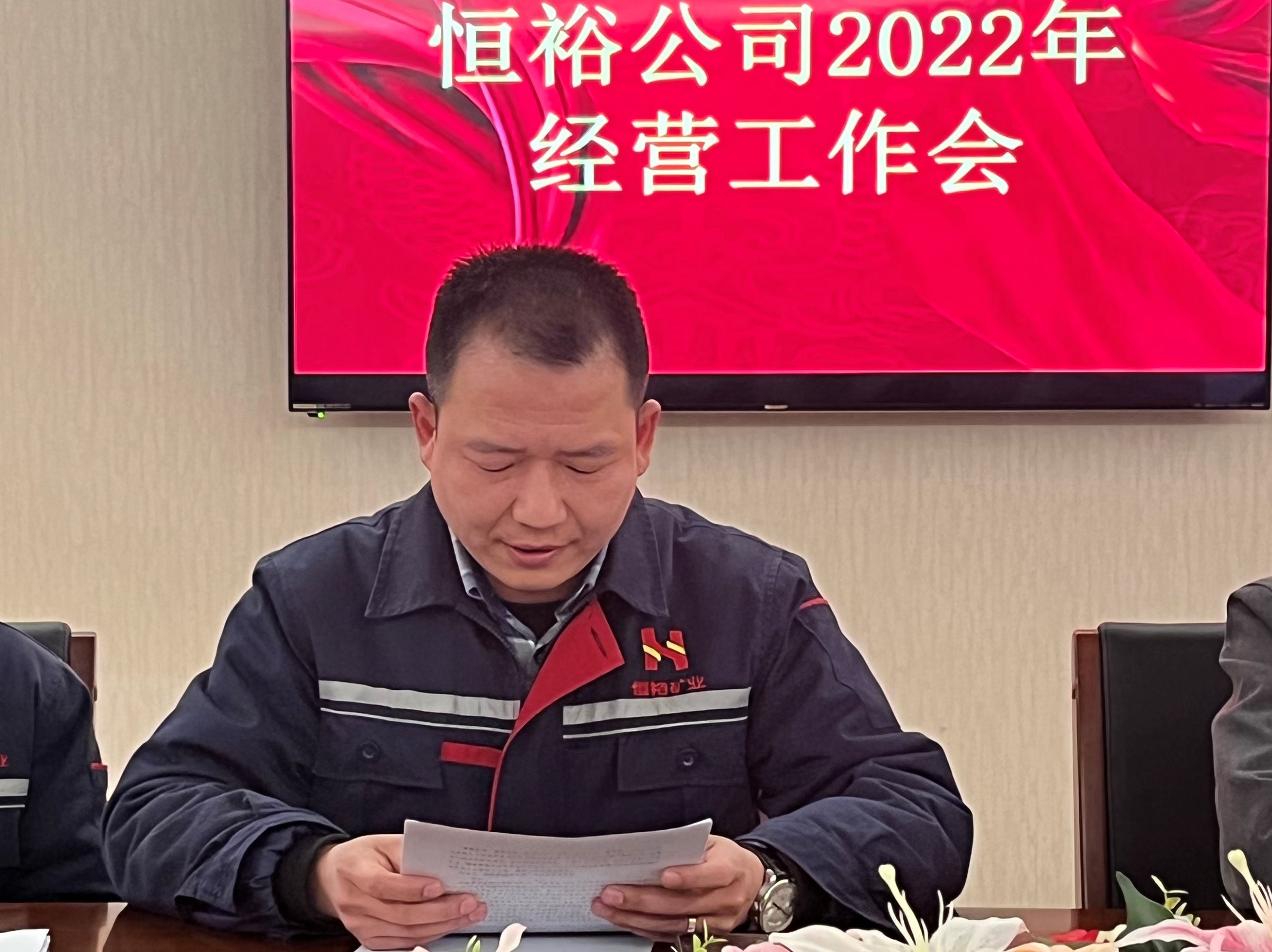 2月3日,欒川恒裕礦業(yè)有限公司召開(kāi)年經(jīng)營(yíng)工作會(huì)議。恒裕公司全體中高層管理人員、2022年受表彰人員、科長(zhǎng)及車間主任代表參加會(huì)議,集團(tuán)公司冶金礦產(chǎn)部潘劍云總經(jīng)理列席會(huì)議。會(huì)議全面總結(jié)2022年恒裕公司建設(shè)經(jīng)營(yíng)情況,表彰過(guò)去一年優(yōu)秀團(tuán)隊(duì)、優(yōu)秀管理者及各崗位表現(xiàn)突出的優(yōu)秀員工,對(duì)2023年工作思路和重點(diǎn)任務(wù)安排部署,動(dòng)員全體員工堅(jiān)定信心、砥礪前行,共創(chuàng)恒裕美好新篇章。