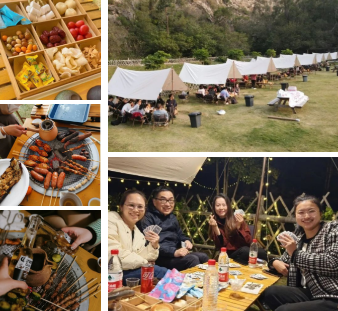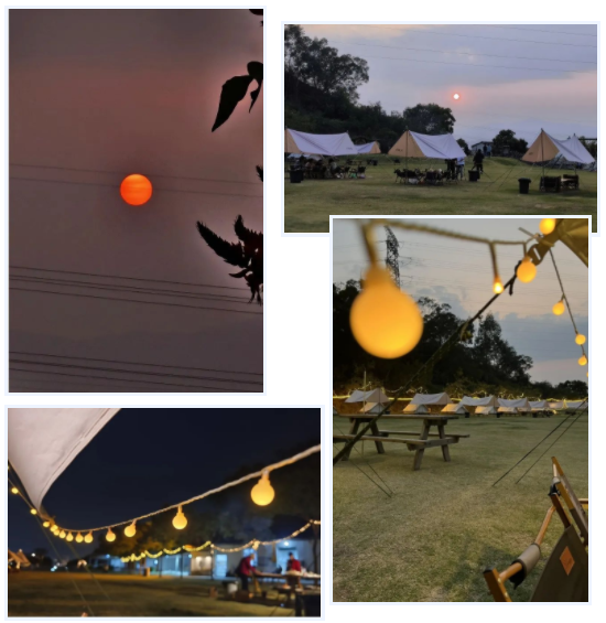 相聚的時(shí)刻,從來(lái)不缺少美食,17:30,燒烤晚餐開(kāi)啟。令人驚喜的是,整片營(yíng)地向西,一眼望去,夕陽(yáng)正西下,我們一起遇見(jiàn)了這個(gè)春天震撼的落日景色。星星點(diǎn)點(diǎn),斑駁光影照在天幕下,美食美酒伴圍繞,聽(tīng)著小伙伴們述說(shuō)各自精彩有趣的經(jīng)歷過(guò)往。雖然時(shí)不時(shí),還要接個(gè)工作電話,但是當(dāng)下,我們?cè)谝黄?,就是最值得開(kāi)心的。