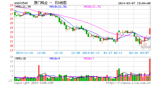 廈門鎢業(yè)(26.04,?-0.52,?-1.96%)(600549)20日晚公布非公開發(fā)行股票預(yù)案,擬募資30億元補(bǔ)充流動(dòng)資金,除公司控股股東、上市公司南京高科(10.70,?0.17,?1.61%)、投資機(jī)構(gòu)認(rèn)購(gòu)?fù)?,廈門鎢業(yè)增發(fā)獲得廈門兩大富豪捧場(chǎng),其中包括資本市場(chǎng)的“強(qiáng)大散戶”柯希平。公司股票于2014年3月21日復(fù)牌。