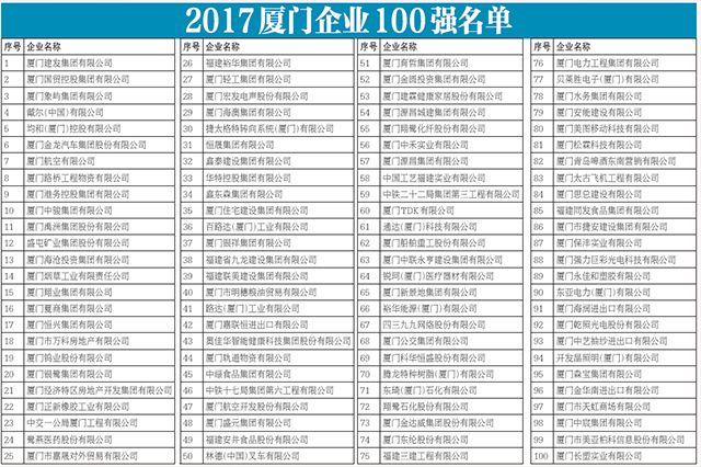 廈門企業(yè)100強和服務(wù)業(yè)企業(yè)十強排行榜首位